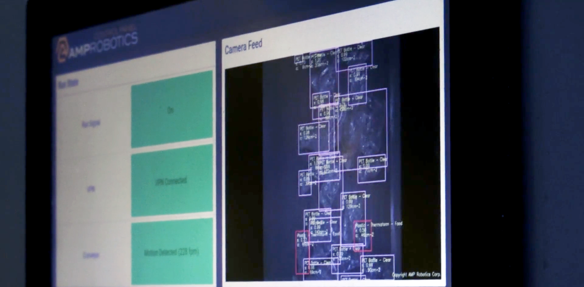 AI platform using computer vision to recognize patterns of specific recyclable materials within a complex waste stream of smashed, folded, and tattered objects—all combined together.